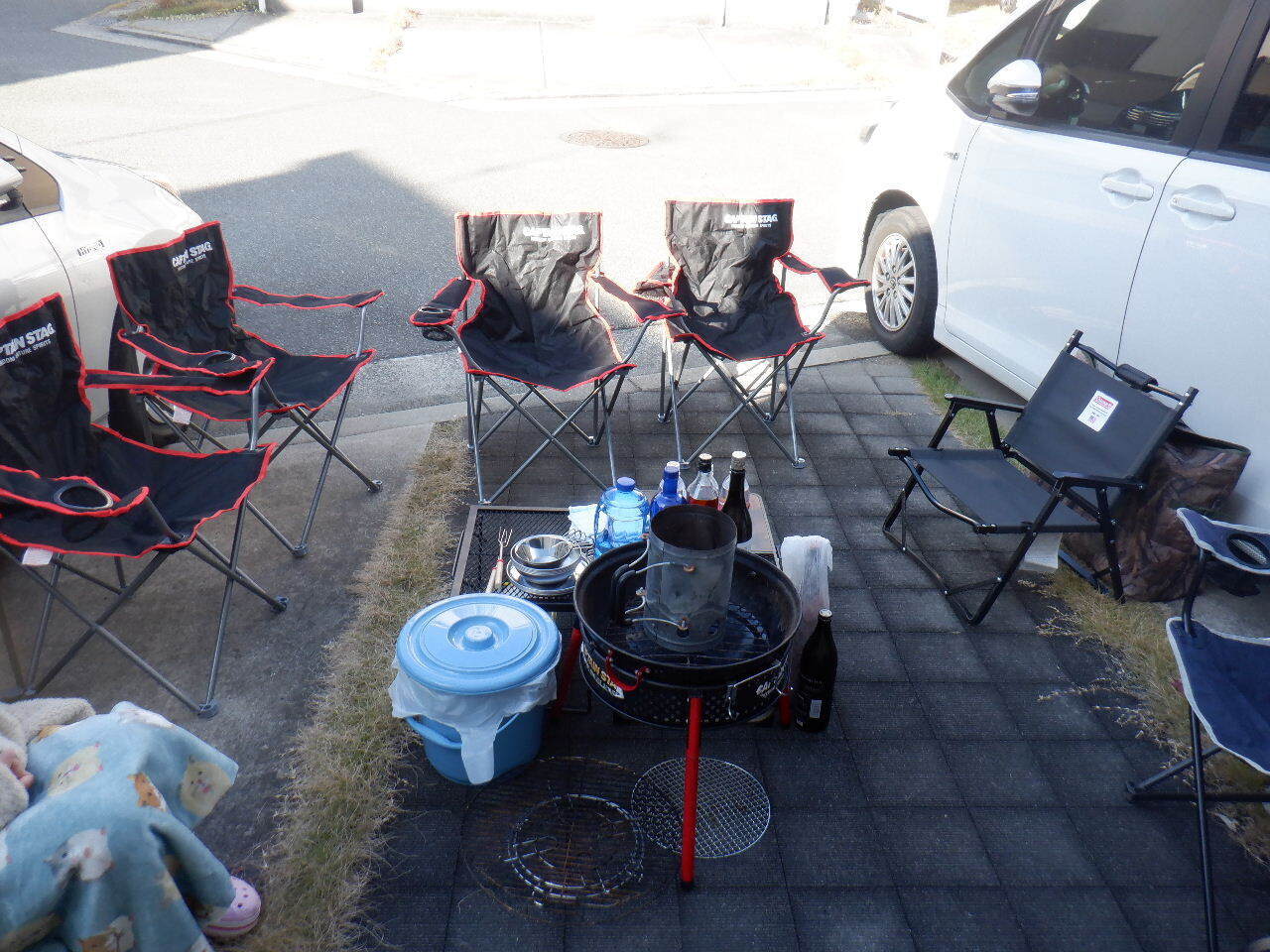 朝7時に起きて風呂に入って目を覚まし… 8:00頃から準備を始めます。10:00に開店予定なのでゴソゴソとセッテイングを始めます。予定通り9:50には炭火に火を入れ準備完了です!